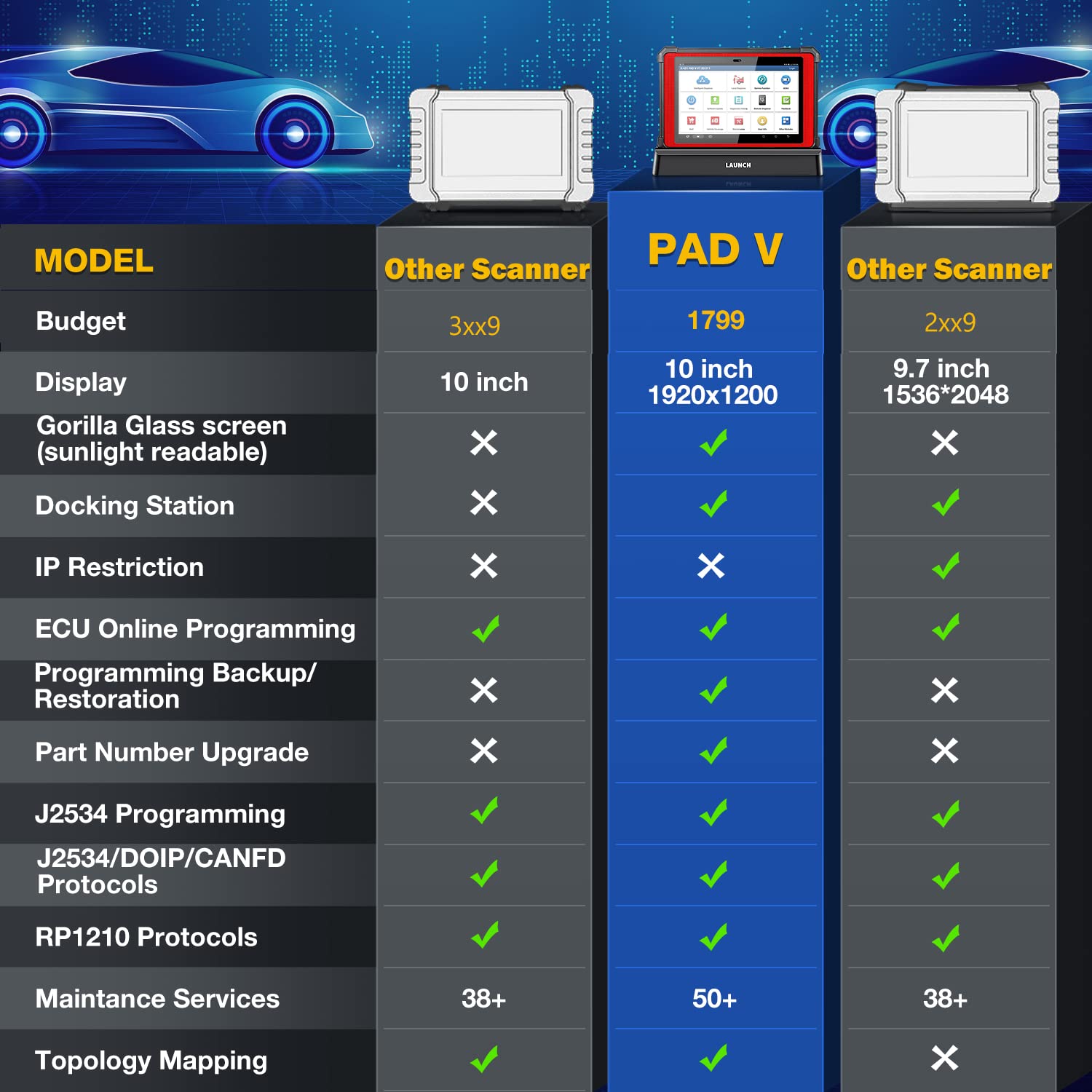 Amazon Com Launch X431 Pad V Ecu Online Programming Coding Scan Tool Topology Map Full System Diagnostic Scanner Full Bi Directional Control 60 Reset Functions Heavy Duty Truck Can Fd 5g Wifi 2 Yrs Update Automotive