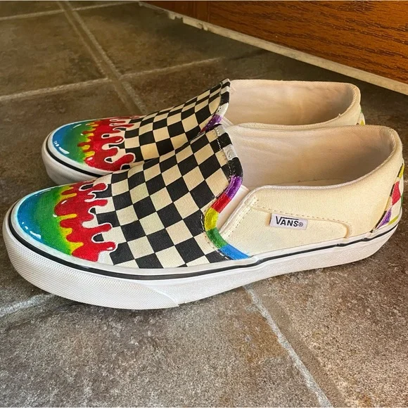 Vans Shoes Vans Slip On Sneakers Of A Kind Hand Painted Checkered Style Size 7 Womans Poshmark